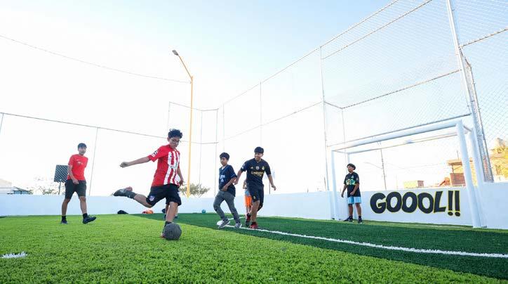 En su mensaje, Leonardo Montañez subrayó que la creación de nueva infraestructura deportiva atiende las necesidades de los ciudadanos de cada rincón de la capital, y reafirmó su compromiso de trabajar para el bienestar de todos. Con una inversión superior a un millón 500 mil pesos, se realizaron trabajos de instalación de pasto sintético, construcción de muro perimetral, colocación de malla ciclónica y la instalación de seis luminarias LED, como parte de la rehabi-