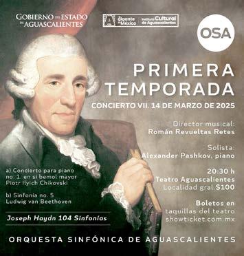 Este viernes 14 de marzo, la Orquesta Sinfónica de Aguascalientes ofrecerá un concierto en el que se interpretará la aclamada y famosa Sinfonía No. 5 de Beethoven, en el Teatro Aguascalientes, a las 20:30 horas, bajo la dirección de Román Revueltas Retes y con el pianista invitado Alexander Pashkov.