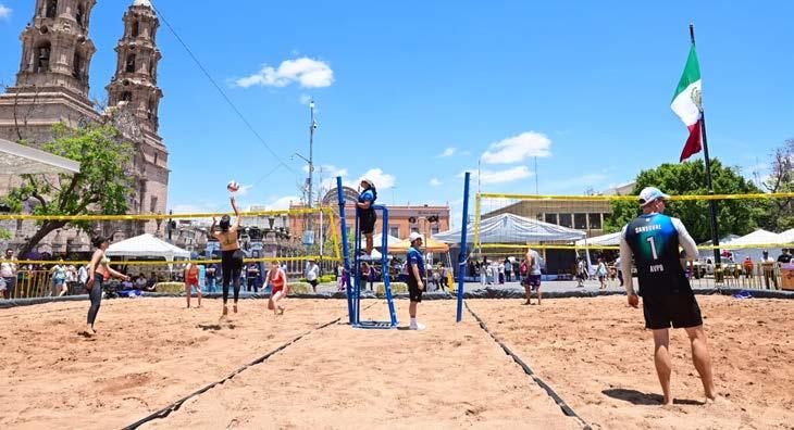 La gobernadora de Aguascalientes, Tere Jiménez, inauguró el Primer Torneo de Voleibol de Playa San Marcos 2025, celebrado en la Plaza Patria como parte de las actividades deportivas de la Feria Nacional de San Marcos. El evento busca consolidarse como una tradición anual que fomente la actividad física, el turismo deportivo y la integración familiar. En su mensaje, la mandataria dio la bienvenida a los 108 atletas participantes, reconociendo su talento y disciplina. Subrayó que el deporte es una herramienta fundamental para formar ciudadanos perseverantes y comprometidos. En esta primera edición compiten 14 equipos na-