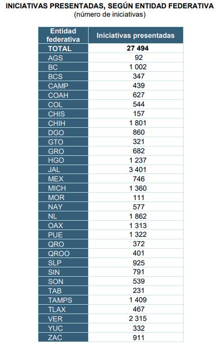 Legislatura de Aguascalientes se despide con el menor número de iniciativas presentadas a nivel nacional De acuerdo a los resultados del Censo Nacional de Poderes Legislativos Estatales 2023 del INEGI, el Congreso de Aguascalientes es el que menos iniciativas ha presentado a nivel nacional, con sólo 92