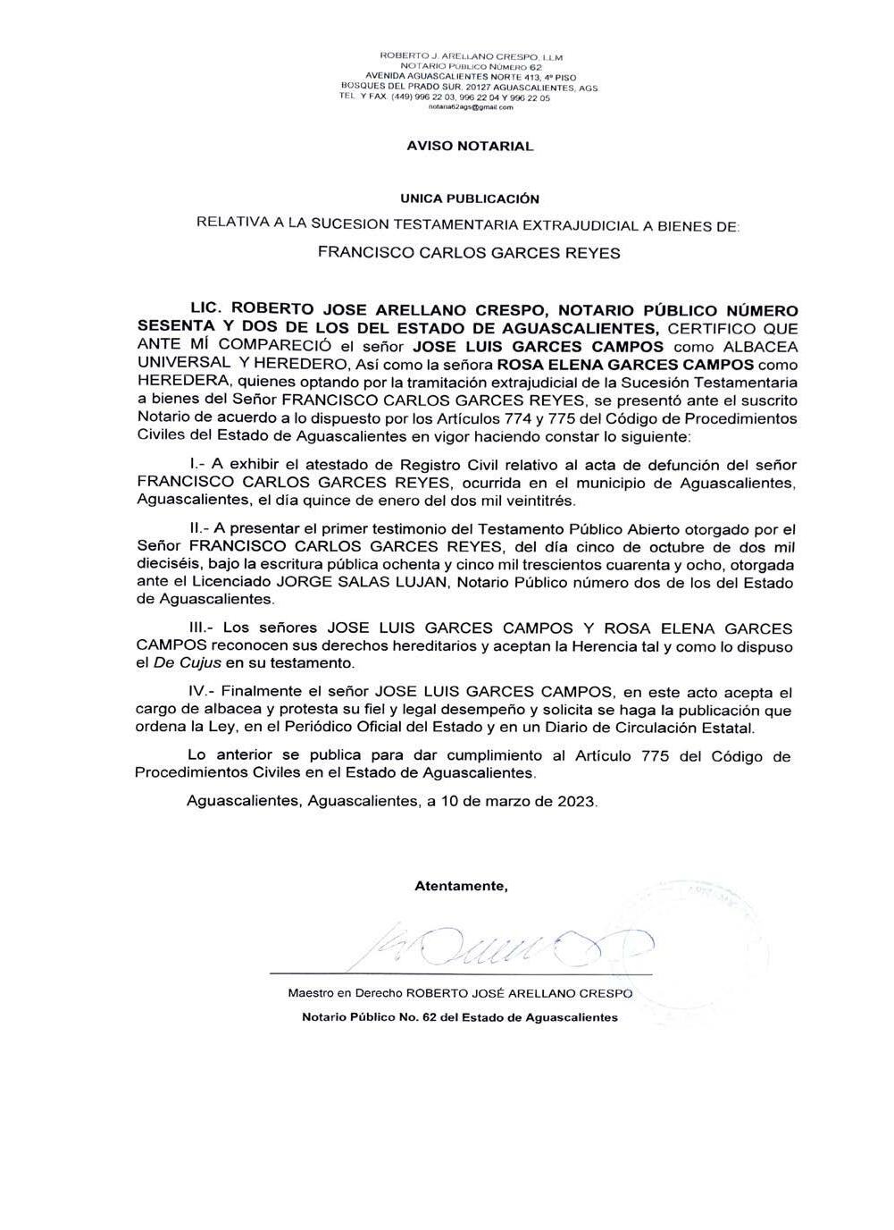 DIRECTOR FRANCISCO M. AGUIRRE ARIASLUNES 13 DE MARZO DE 2023