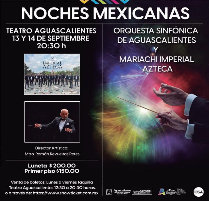 Celebra las fiestas patrias y disfruta del concierto Noches Mexicanas con la Orquesta Sinfónica de Aguascalientes y el Mariachi Imperial Azteca.