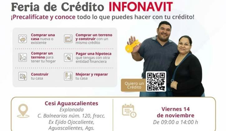 El Instituto del Fondo Nacional de la Vivienda para los Trabajadores (INFONAVIT) llevará a cabo sus Ferias de Crédito y Soluciones de Pago en Aguascalientes, con el propósito de acercar información y asesoría a las personas interesadas en obtener un crédito o regularizar sus pagos ante el Instituto.
