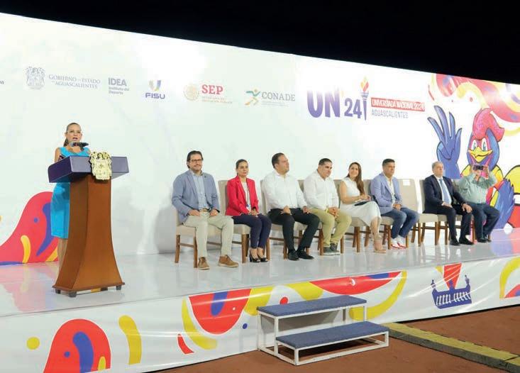 Con la presencia de Sandra Yesenia Pinzón Castro, rectora de la Universidad Autónoma de Aguascalientes, María Teresa Jiménez Esquivel, gobernadora constitucional del Estado de Aguascalientes y Manuel Alan Merodio Reza, secretario general ejecutivo del Consejo Nacional del Deporte de la Educación (CONDDE) se realizó la inauguración de la Universiada Nacional 2024.