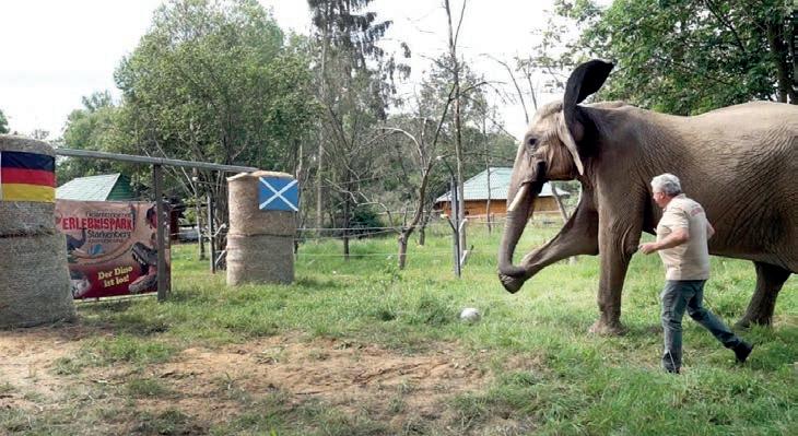 Y este dice que Alemania va a ganar su primer partido del Campeonato Europeo. Bubi es un elefante africano que vive en una reserva en Thuringia, Alemania. El jueves recibió la tarea de pronosticar al vencedor del duelo inaugural de la Eurocopa 2024 entre la nación sede y Escocia en Múnich el viernes. Bubi pateó un balón hacia la bandera de Alema -