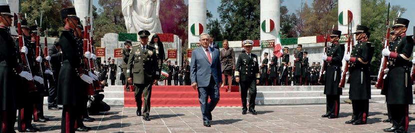 El jefe del Ejecutivo también develó la placa del Bicentenario del Heroico Colegio Militar, colocó una ofrenda floral y montó una Guardia de Honor acompañado de la doctora Beatriz Gutiérrez Müller; del jefe de Gobierno de la Ciudad de México, Martí Batres Guadarrama; de las secretarias de Seguridad y Protección Ciudadana, Rosa Icela Rodríguez Velázquez y de Gobernación, Luisa María A lcalde Luján y de los secretarios de la Defensa Nacional, Luis Cresencio Sandoval González y de Marina, José Rafael Ojeda Durán.