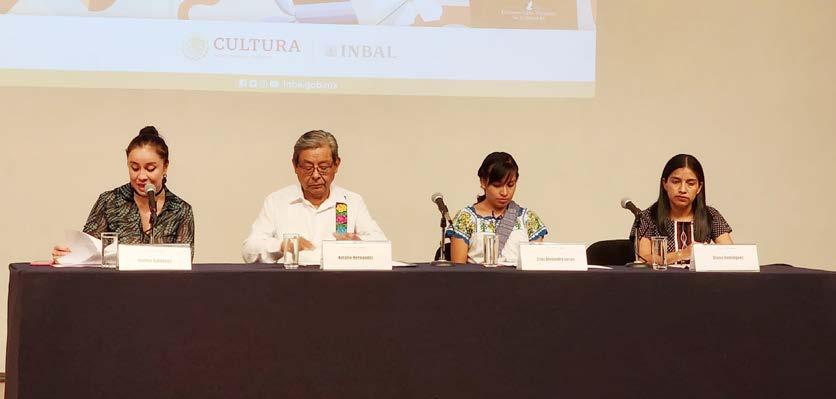 La Secretaría de Cultura del Gobierno de México, el Instituto Nacional de Bellas Artes y Literatura (INBAL) moderada por la subdirectora de Literatura y Autores de la CNL, Jenifer Balderas. La primera en tomar la palabra fue la poeta y narradora Cruz Alejandra Lucas Juárez, quien dio lectura en totonaco y en español a su poema Extranjero, en la cual describe la pérdida de la identidad que tienen los hablantes de una lengua en específico, pero también de otras lenguas originarias.