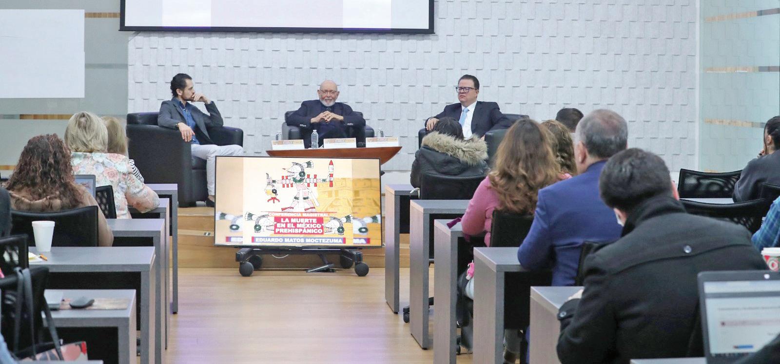 Matos Moctezuma platicó sobre el pensamiento de la muerte y las prácticas mortuorias entre diversos pueblos, como los mexicas, mayas, zapotecas,