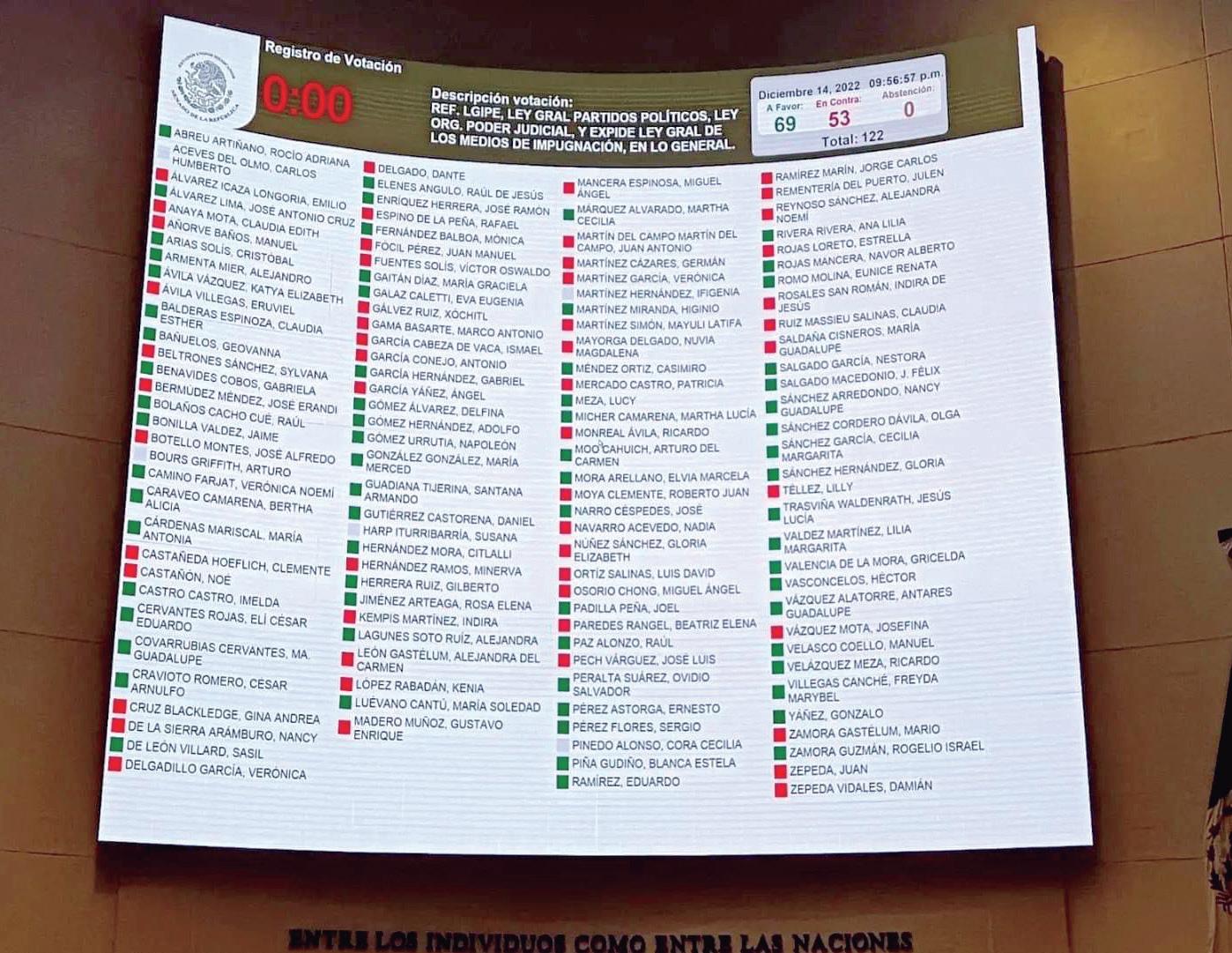 En lo general, el Plan B de López Obrador fue aprobado en el Senado con 69 a favor, 53 en contra y cero abstenciones, así como tres ausencias de senadores de Morena, de nada sirvieron las múltiples intervenciones de los opositores, el llamado de Miguel Ángel Osorio Chong a 12 morenitas para que decidieran con libertad y autonomía; el señalamiento sobre los vicios de origen indicador por Beatriz Paredez quien insistió en que se está incurriendo en una ilegalidad; o el reclamo de Damián Zepeda al estar avalando que se está legitimando el fraude electoral al aprobar la transferencia de votos; o la revelación de Dante Delgado al evidenciar que con el Plan B, lo que el presidente quiere es trastocar la certeza jurídica de las elecciones del 2024… Al final, con el voto en contra razonado de Ricardo Monreal, a quien acompañó Rafael Espino, la mayoría de Morena aprobaron la exposición de motivos del primer dictamen, como explicó Emilio Álvarez Icaza , cuando Alfredo Botello Montes preguntó que ¿qué iban a votar, si todo fue reservado? 1,744 reservas que, al momento del cierre de esta columna, continuaban discutiendo en el Senado, porque se inscribieron más de 60 oradores.