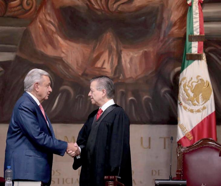 Al recordar la reforma judicial promulgada en marzo de 2021, agradeció al presidente López Obrador el respaldo que brindó a dicho proyecto con el que se rediseñó la carrera judicial, se estableció un nuevo sistema de precedentes y marcó el fortalecimiento de la Corte como tribunal constitucional.