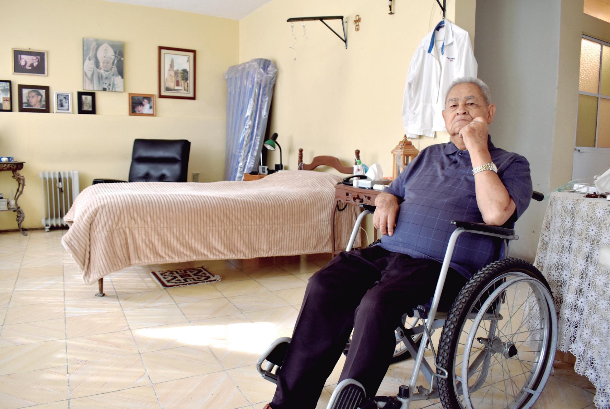 Le tomé esta fotografía hace casi dos años, en su casa, rodeado de las cosas que simbolizaban todo aquello que amaba y por las que vivió, fotografías familiares, el templo del Encino, la Virgen de la Asunción -que no se ve aquí- Juan Pablo II…