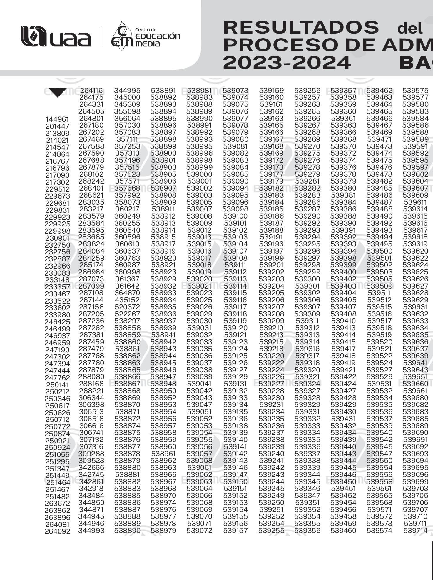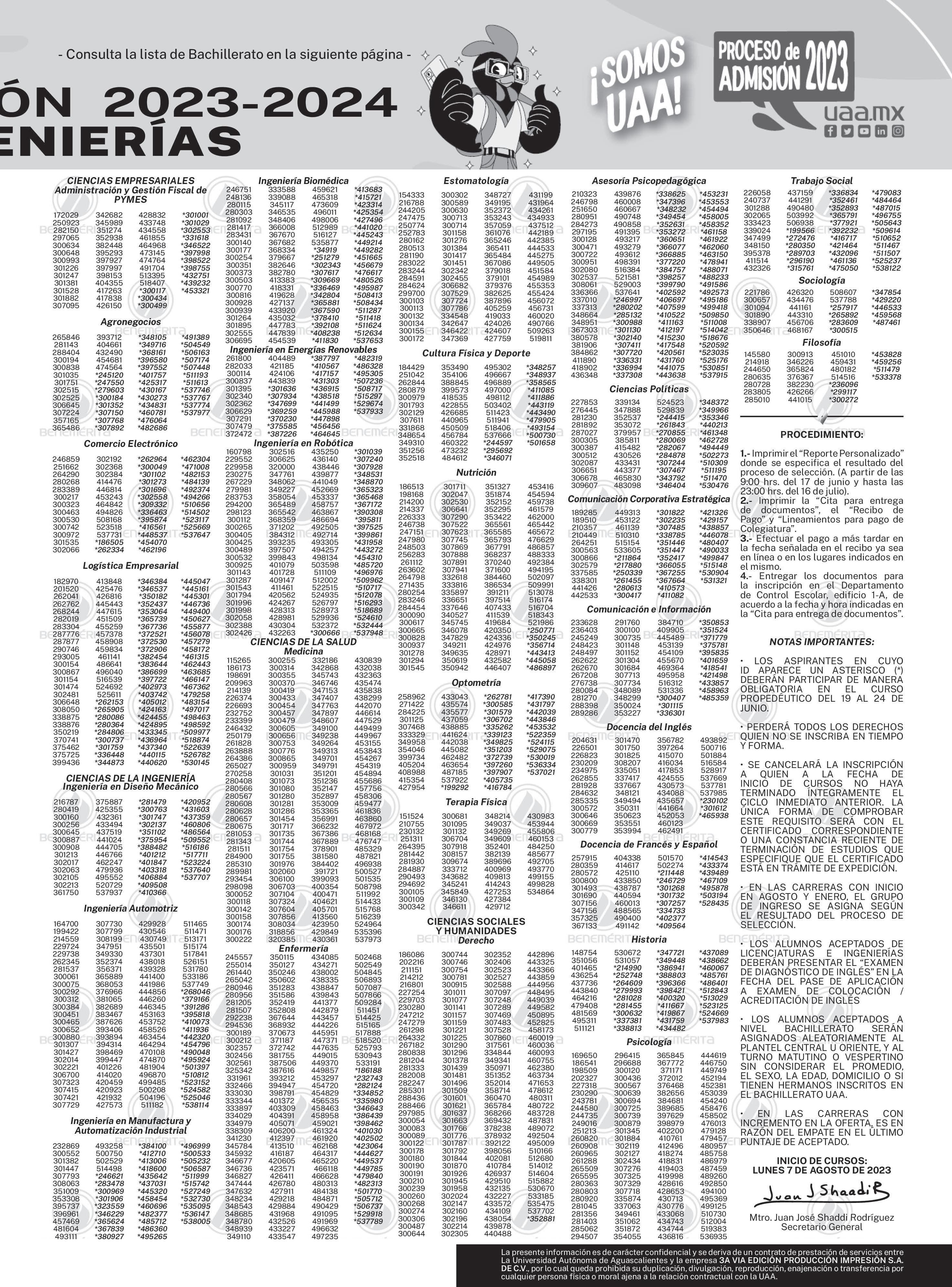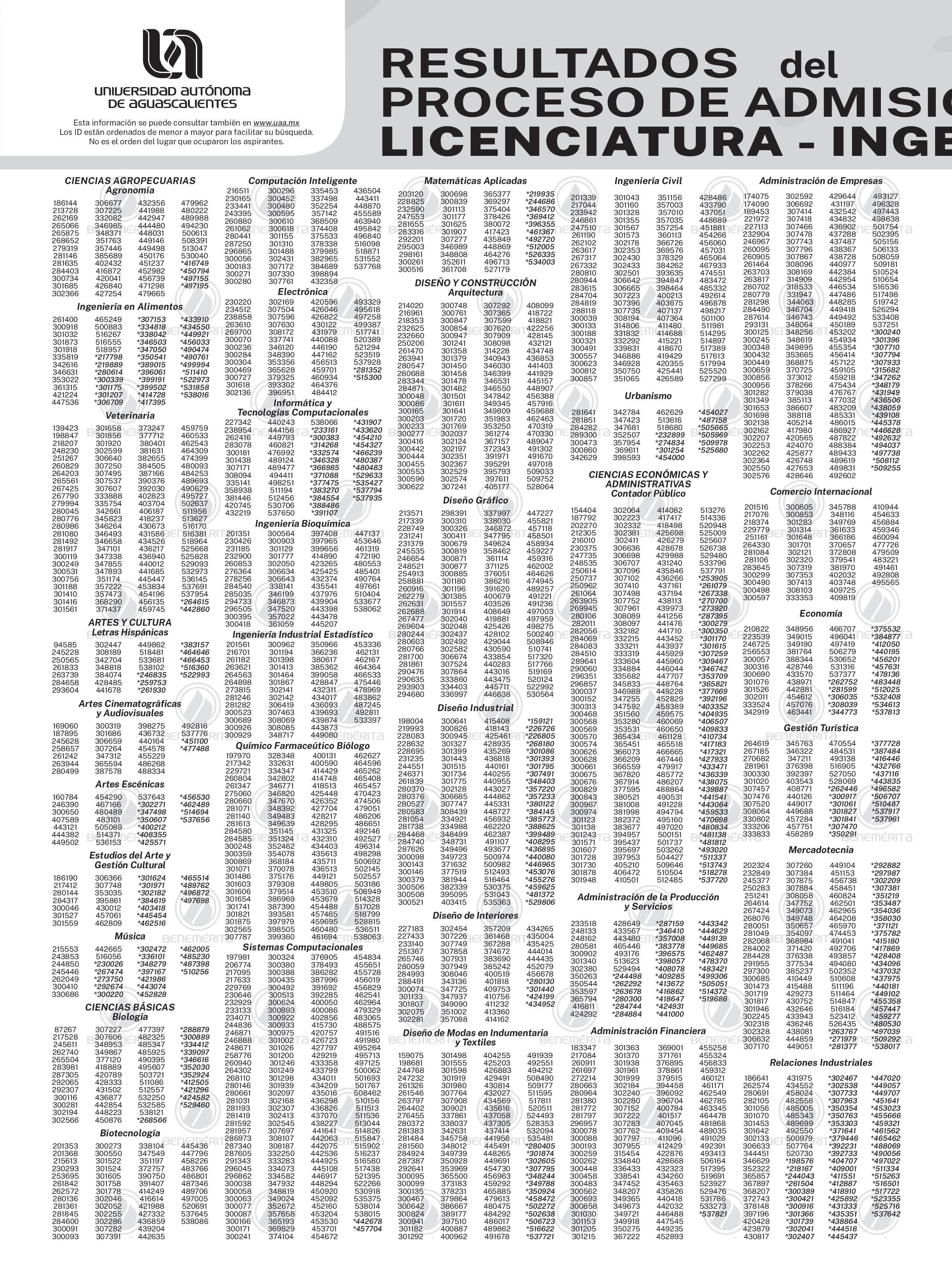 Resultados del PRoceso de admisión de licenciatuRa y bachilleRato uaa