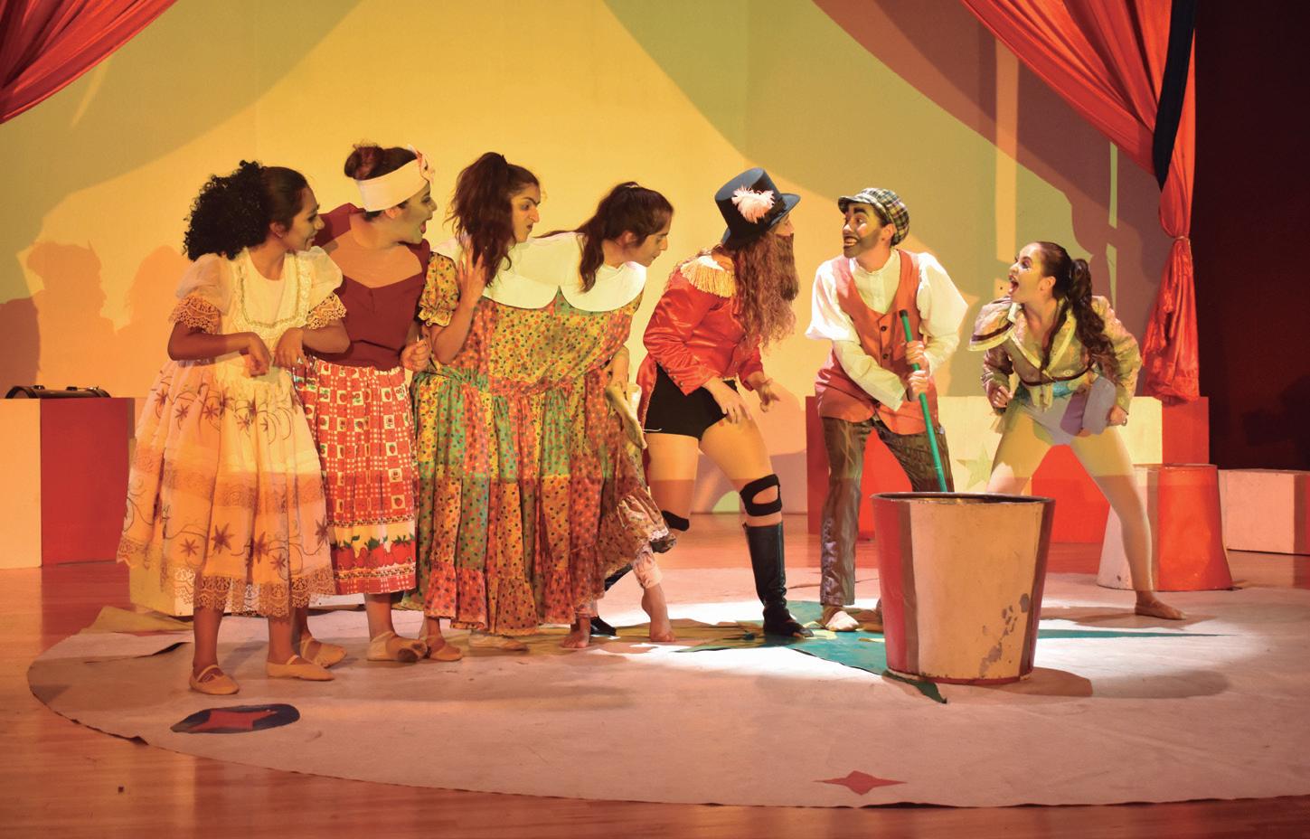 En la imagen, un grupo de egresadas de la sexta generación de Artes Escénicas Actuación, 2015-2019, en pleno montaje de egreso, “El mundo del mañana”, basada en la obra de Michael Ende “Jojo, la historia de un saltimbanqui ”.