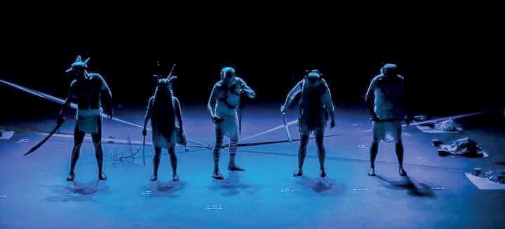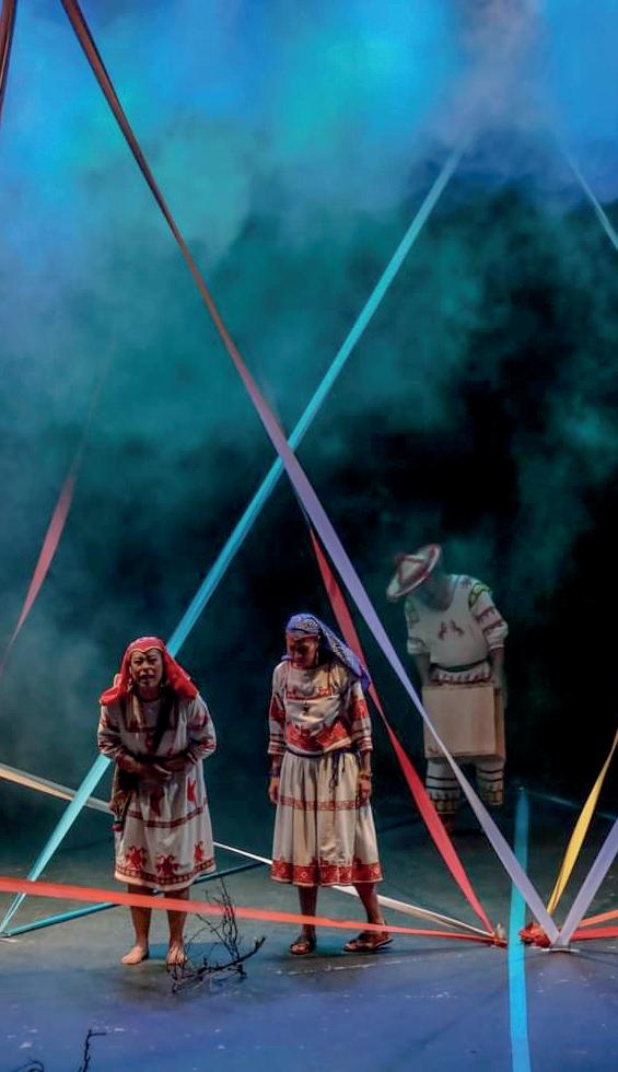 “Disfruto muchísimo actuar”, reconoce Mario, “siempre representa un gran reto. Y para esta obra, el reto fue más grande para quienes interpretamos a los coras, porque el desafío fue hablar náayeri, la lengua de los coras. Para lograrlo, tuvimos asesorías con una chica que nos dio clases de náayeri y ella misma hizo la traducción del texto del español a su lengua. En un segundo momento, nos mandó los audios de los diálogos y a nosotros nos tocó realizar un aprendizaje fonético, porque no hay referencias de náayeri con el español u otras lenguas”.