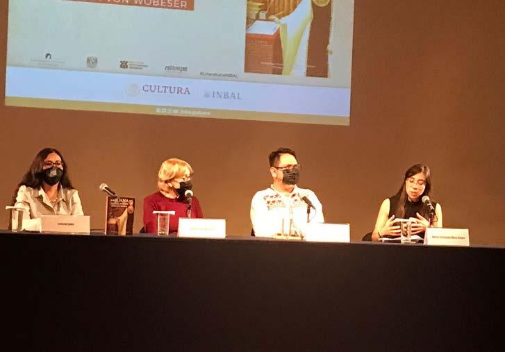 En la Sala Manuel M. Ponce del Pa lacio de Bellas Artes, moderados por la coordinadora nacional de Literatura, Le ticia Luna Aguilar; la historiadora María Fernanda Mora Reyes; el curador Abra ham Villavicencio García; y Gisela von Wobeser, autora del libro, ahondaron en el enfoque que brinda la investigación acerca de la vida de sor Juana Inés de la Cruz, sus decisiones y la relación con su época y entorno.