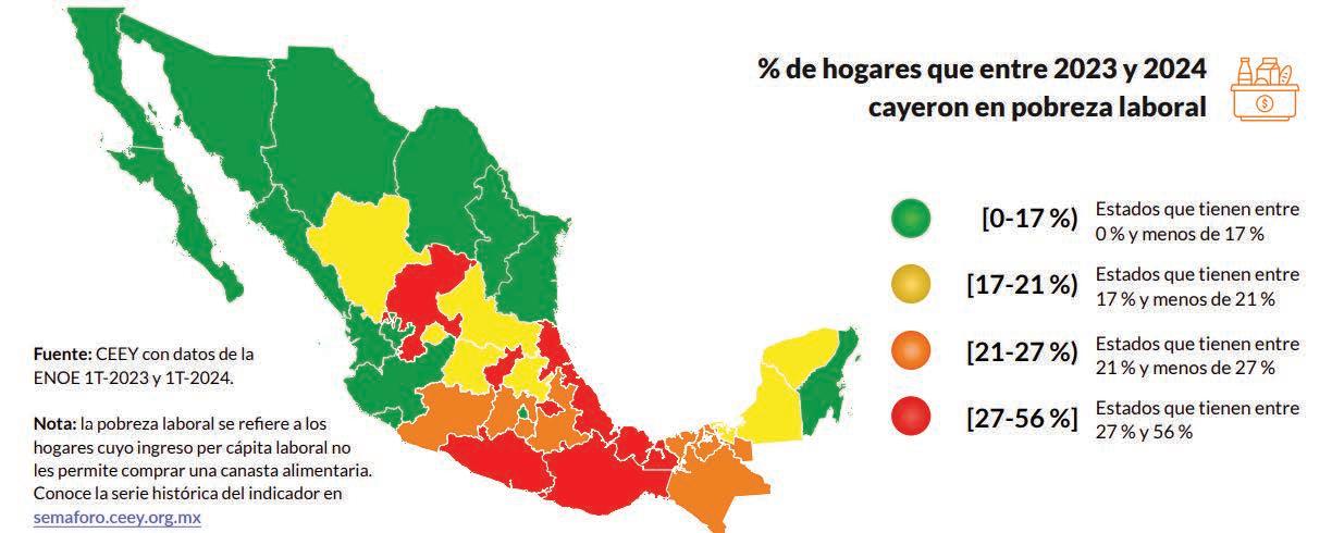 El “Semáforo de Movilidad Social” del CEEY es una herramienta que permite monitorear los cambios en la movilidad y la desigualdad en México, proporcionando información actualizada sobre cómo las personas acceden a oportunidades y mejoran su calidad de vida. Tanto como Aguascalientes, el vecindario regional ha estado a la baja en movilidad por caer en pobreza laboral. Les corresponden los lugares 6, 15, 16, 19, 29 y 32 entre Jalisco y Zacatecas.