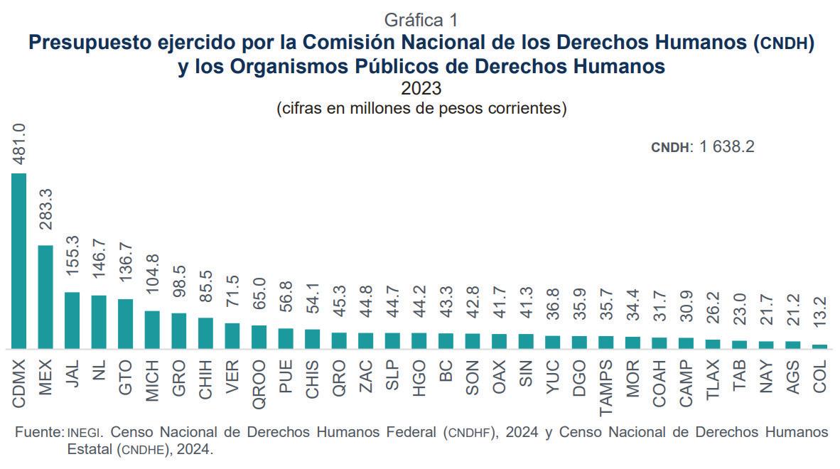 Durante 2023, los Organismos de Derechos Humanos ejercieron un presupuesto total de 4, 036 mdp