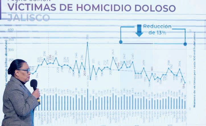 En el informe mensual de seguridad correspondiente, la secretaria de Seguridad y Protección Ciudadana, Rosa Icela Rodríguez Velázquez, destacó la baja incidencia en homicidios dolosos al registrar 17.7 por ciento menos víctimas al cierre de 2022, respecto al máximo histórico de 2018.