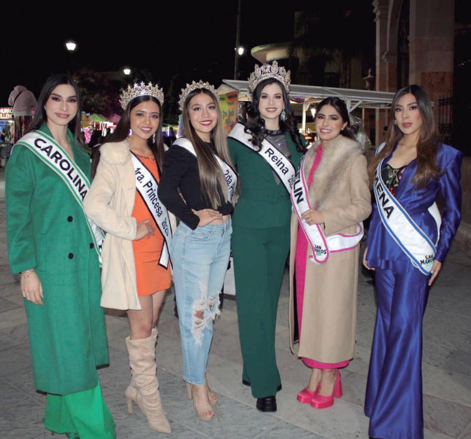 Las candidatas a reina de la Feria Nacional de San Marcos, Carolina, Ximena y Yoselin, participaron en el evento de clausura de la Feria Nacional de Rincón de Romos, acompañando en el lugar a la reina de