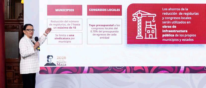 Los ahorros de la reducción de regidurías y congresos locales serán utilizados en obras de infraestructura pública de los propios municipios y estados”, informó el Gobierno Federal.