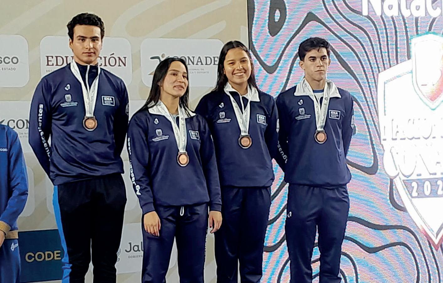 En la misma disciplina, pero en la modalidad de equipo de relevo 4x100 combinados, Bryan Martínez Montejo, Santiago Zaragoza Reyes, Dhalia Jiménez Saldaña y María del Rosario Herrera conquistaron la medalla de bronce en la categoría de 17 a 18 años.
