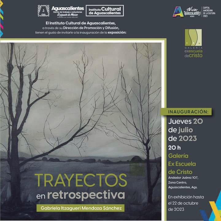 El Instituto Cultural de Aguascalientes invita a la inauguración de “Trayectos en retrospectiva”, de la artista hidrocálida Gabriela Itzagueri Mendoza Sánchez, que