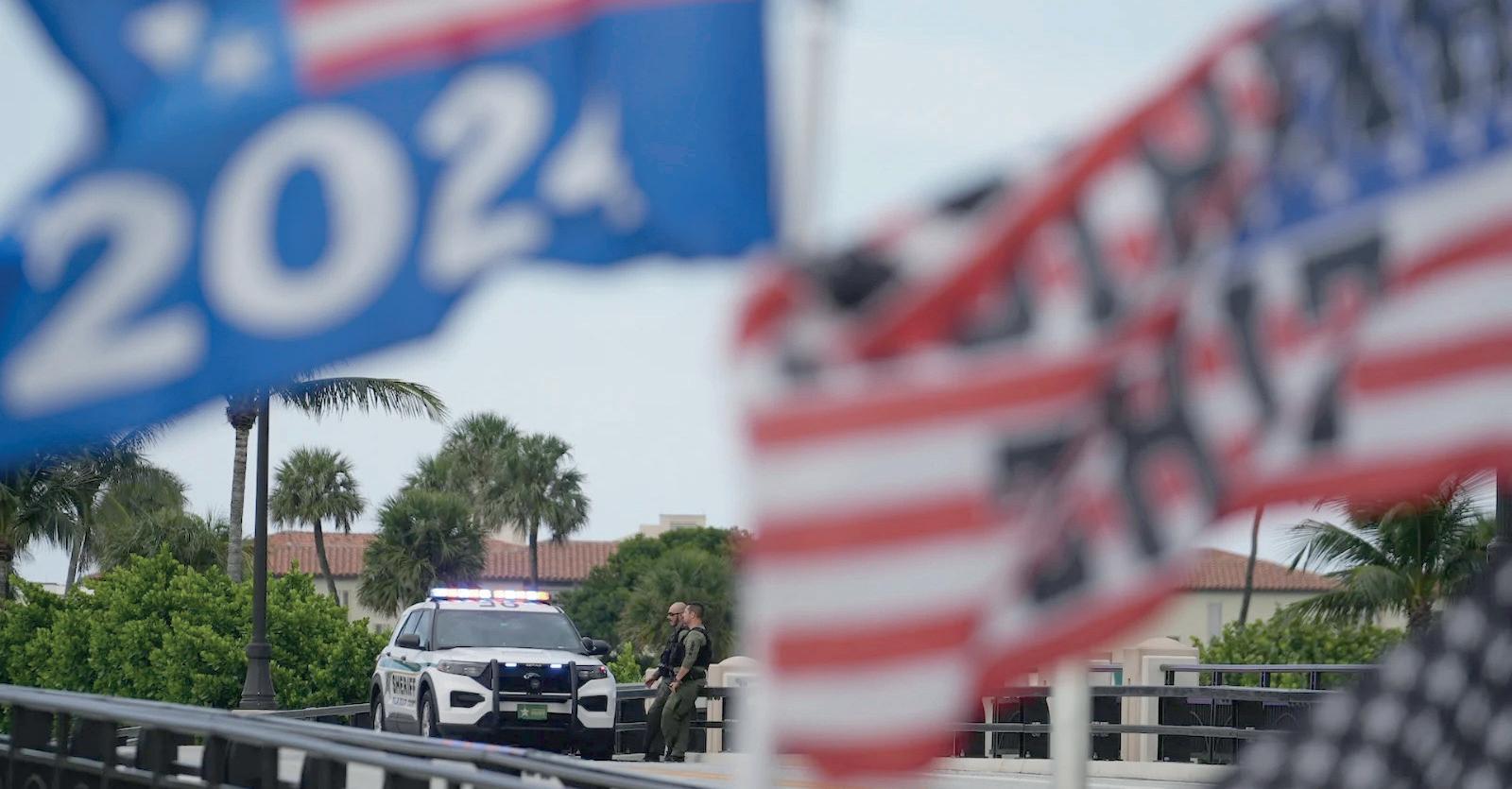 Policías resguardan un puente ubicado a un costado de la finca Mar-a-Lago de Donald Trump