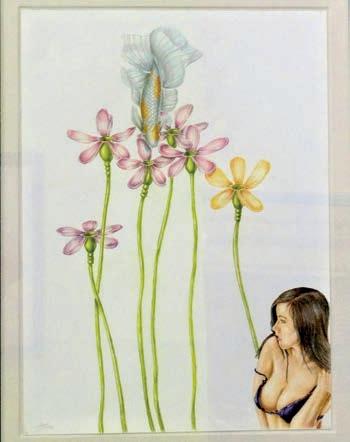 JLA: Hay en las imágenes de tu obra, la presencia, un gusto por los imaginarios y lo fantástico, que se expresa morfológicamente mediante un lenguaje que recurre a lo antropomorfo, lo fito o lo zoomórfico, es decir, temas que se encuentran con lo humano, la vida silvestre, la botánica y la zoología. Quizá esto sea de manera surreal, erótica e íntima, elementos, poblaciones y comunidades que coexisten entre sí y que en cierto sentido se reúnen simbióticamente para crear tus propios ecosistemas, constructores de una suerte de biósfera, siendo ese el mundo que durante algunos años de producción ha animado tu obra y que hoy se encuentra reunida en esta muestra. ¿Qué hay de eso?