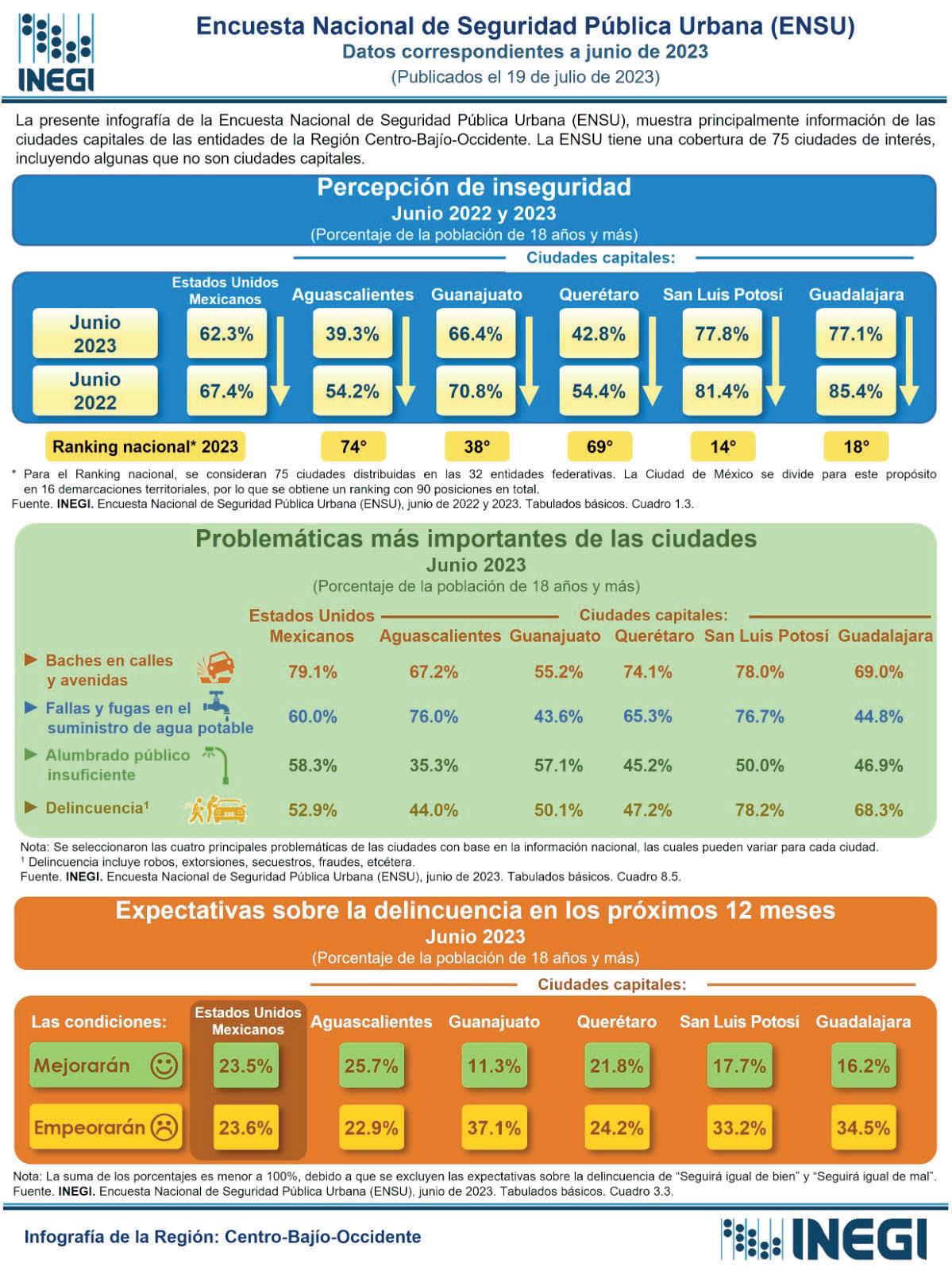 62.3% de la población consideró inseguro vivir en su ciudad, en Aguascalientes sólo el 39.3