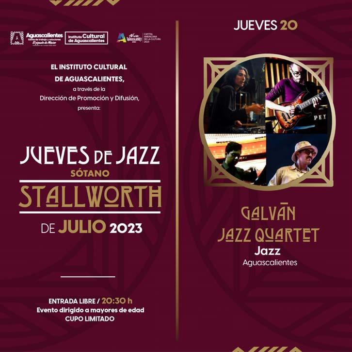 Este jueves 20 de julio en el Sótano Stallworth se presentará el grupo hidrocálido Galván Jazz Quartet. La cita es a las 20:30 horas.