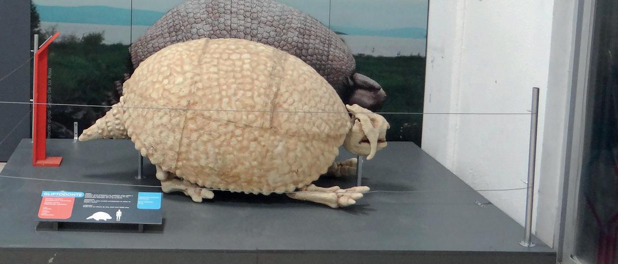 Zonas temáticas de la exposición: 1 Introducción, 2 Gliptodonte, 3 Ave del Terror, 4 Gran intercambio biótico americano, 5 Smilodon, 6 Oso cara corta, 7 Mamut 8 Relación antropogénica y extinción 9 La labor paleontológica.