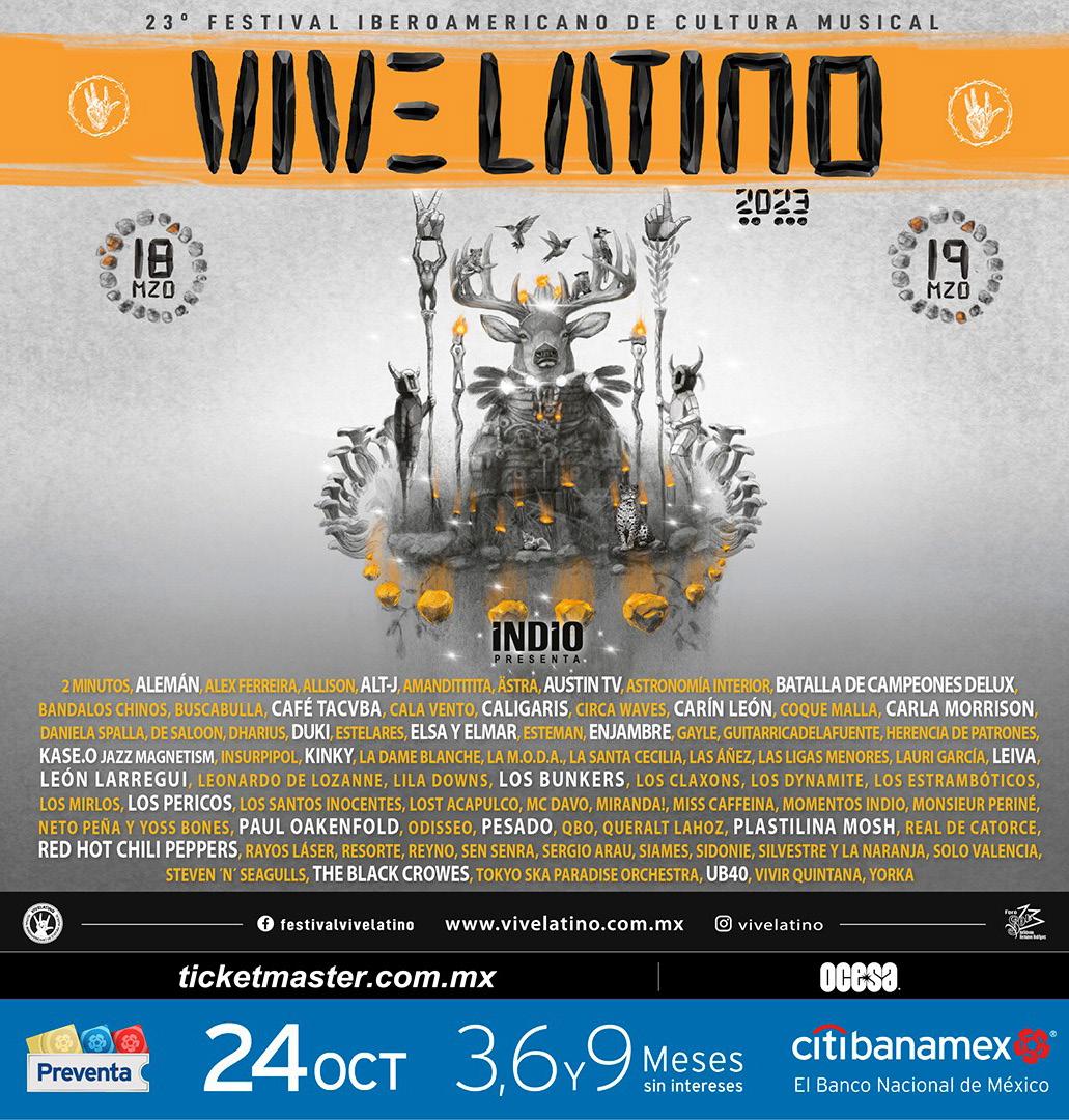 El festival Vive Latino anunció, finalmente, a los invitados para su próxima edición a celebrarse los días 18 y 19 de marzo de 2023, destacando la presencia de Red Hot Chili Peppers, Café Tacvba, Alemán, Austin TV, Los Bunkers, UB40 y The Black Crowes.
