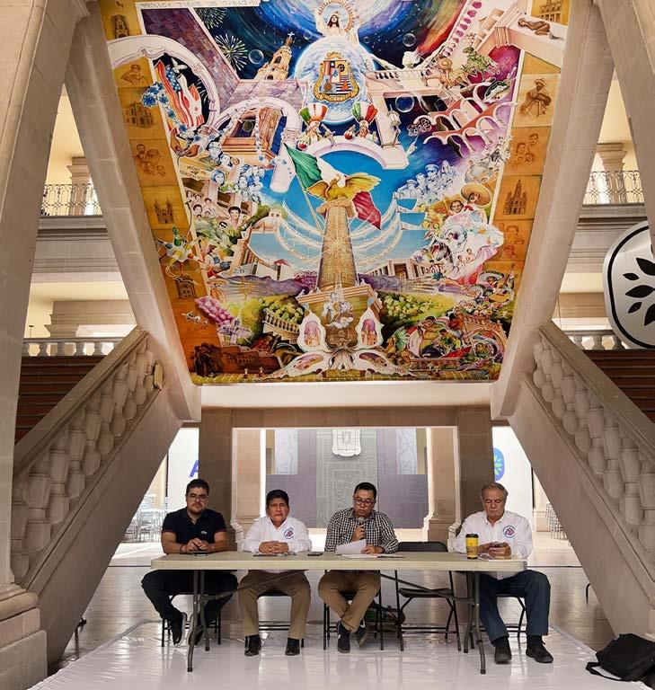 Bajo el mural del descanso de la escalera monumental del Palacio Municipal; bajo el águila republicana de la exedra, Nuestra Señora de la Asunción; bajo las efigies de algunos personajes destacados o característicos de la urbe, los cronistas del estado fueron desgranando sus recuerdos de su experiencia sobre la ciudad, tal y como se muestra en la imagen.
