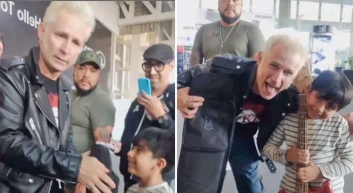 Mike Dirnt, integrante de Green Day, regaló bajo a niño mexicano