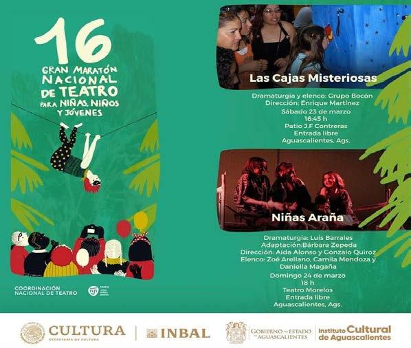 El sábado 23 de marzo a las 16:45 horas en el Patio Jesús F. Contreras, se presentará Las Cajas Misteriosas; el domingo 24 de marzo a las 18:00 horas en el Teatro Morelos, Niñas Araña. La entrada es libre.