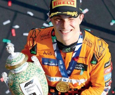 El australiano de 23 años inició segundo detrás de Norris y lo superó en la primera vuelta para irse al frente. Norris recuperó el primer lugar tras una estratégica parada en pits que le favoreció, pero finalmente accedió a la petición del equipo de darle la posición a su compañero.