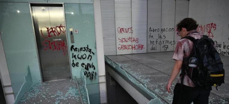 “Hubo algunos actos con los que no estamos de acuerdo y no vamos a estar de acuerdo nunca: una parte, un grupo muy pequeño de una de las manifestaciones entró a Ciudad Universitaria, rompió los vidrios de una librería y quemaron libros. Los únicos que han quemado libros en la historia son los fascistas”, expuso.