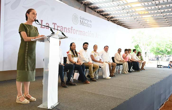 todos los estudiantes de secundarias ya reciben la beca universal Rita Cetina; todas las personas adultas mayores y con discapacidad son visitados con Salud Casa por Casa; mientras que por primera vez en la historia 558 comunidades mayas reciben recursos del Fondo de Aportaciones para la Infraestructura Social para los Pueblos Indígenas y Afromexicanos (FAISPIAM), como parte de la reforma constitucional al artículo 2 que los reconoce como sujetos de derecho.