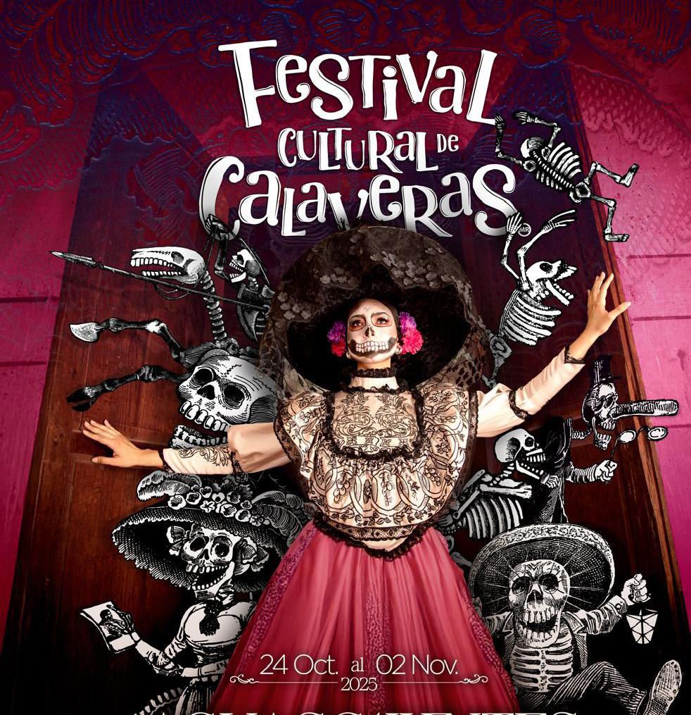 “Ya viene la Catrina, entrando fuerte y decidida en esta tierra de calaveras bien lucidas y pulidas”. Con esta frase que evoca tradición y poesía, Aguascalientes presenta el cartel oficial del XXXI Festival Cultural de Calaveras, una de las celebraciones más esperadas de México, que este 2025 se realizará del 24 de octubre al 2 de noviembre.