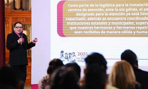 Durante la Conferencia del Pueblo de la Presidenta Claudia Sheinbaum, en Palacio Nacional, la secretaria de Gobernación, Rosa Icela Rodríguez, aseguró que el gobierno federal está listo para recibir con los brazos abiertos a las y los connacionales con calidez, humanismo y certeza de oportunidades para una vida digna en el país.