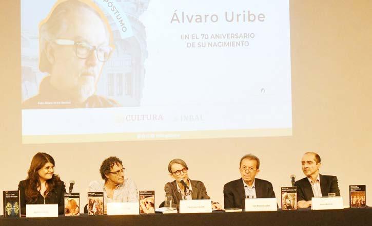 La Secretaría de Cultura federal y el Instituto Nacional de Bellas Artes y Literatura (INBAL), mediante la Coordinación Nacional de Literatura (CNL), llevaron a cabo un homenaje póstumo a Álvaro Uribe al celebrar el 70 aniversario de su nacimiento, en la Sala Manuel M. Ponce del Palacio de Bellas Artes.