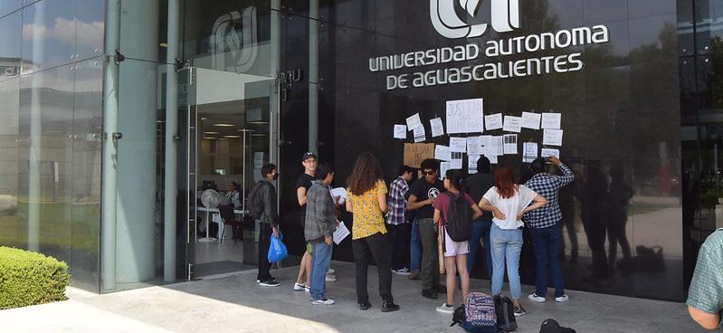 Se manifiestan estudiantes de la UAA a las afueras del edificio de rectoría