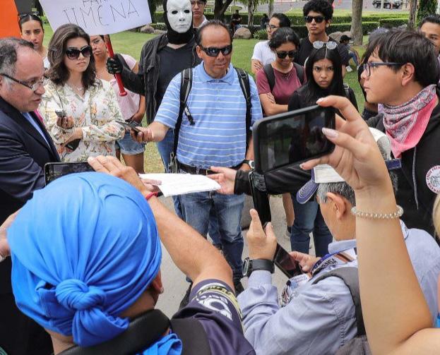 Las decenas de estudiantes que se manifestaron fueron atendidos por el secretario general de la UAA, Juan José Shaadi Rodríguez , quien recibió el pliego petitorio con sus exigencias e insistió en la versión de la universidad sobre este caso, que la presunta acosadora de Jimena se dio de baja de esta institución antes de que la víctima se quitara la vida, “estamos realizando la investigación, porque en realidad la persona a la cual señalan como acosadora ya no forma parte de la comunidad universitaria, era estudiante de segundo semestre. Ella se dio de baja antes del suicidio”, Shaadi Rodríguez insistió en que la víctima fue atendida de acuerdo al protocolo y que nunca presentó una denuncia ante la Defensoría de los Derechos Universitarios. La empatía a la que se refirió la rectora Sandra Yesenia Pinzón por la mañana, que sí mostraron los estudiantes que se manifestaron, le faltó al secretario general, no amabilidad, empatía; todo quedó en el aire, lo peor es que hoy, los padres de Jimena han convocado a una rueda de prensa para “dar a conocer omisiones de las autoridades en la UAA para atender crisis emocionales”, y entonces sí, sabremos de primera mano en dónde ha fallado la universidad, y lo que se puede mejorar, porque lo escucharemos de las víctimas y no de quienes han tratado de sacar raja de este dolorosísimo caso para hacer politiquería al interior de la universidad.
