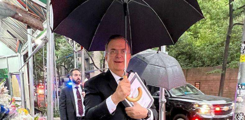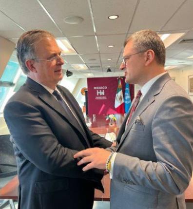 Ebrard dedica un minuto a presentar ante la ONU la propuesta de López Obrador para la paz en Ucrania Luego de reunirse con Ebrard, canciller ucraniano agradece a México su apoyo/ Mathieu tourliere / Mathieu tourliere / Mathieu tourliere Marcelo Ebrard y Dmytro Kuleba Marcelo Ebrard a su llegada a la ONU