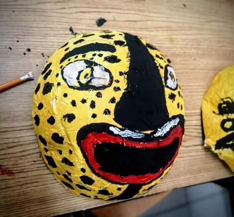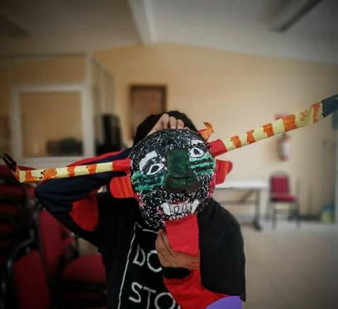regionales, aprendiendo las técnicas del papel maché: moldeado con cartón, engrudo, pintura y texturas. Asimismo, los docentes explicaron el origen virreinal de este oficio, que se consolidó como arte popular durante la Colonia y se mantiene vigente para crear Judas, alebrijes, piñatas y calaveras. Este taller no sólo enseña habilidades manuales, también promueve el sentido de identidad cultural. Los niños conviven y se integran en un dinámico ejercicio de creación colectiva, mientras