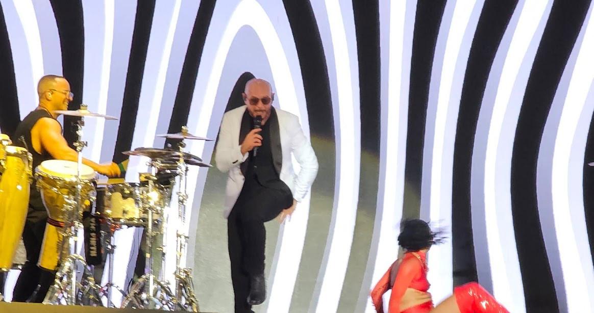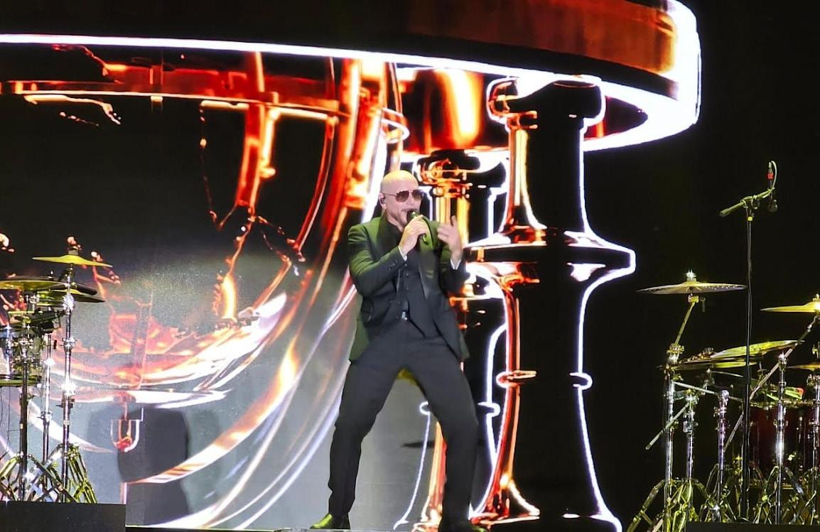 El artista cubano-estadounidense, también conocido como Mr. Worldwide, repasó sus éxitos globales como “Give Me Everything”, “Time of Our Lives” y “I Know You Want Me”, acompañado de un despliegue visual impresionante y una banda en vivo que mantuvo el ambiente en lo más alto durante toda su presentación.