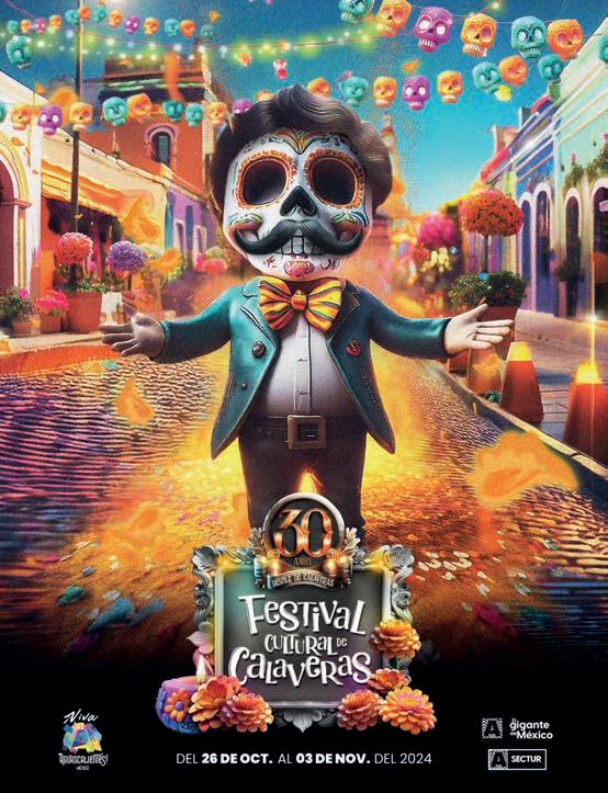 La Secretaría de Turismo del estado de Aguascalientes presentó el cartel oficial del Festival Cultural de Calaveras 2024, que en esta ocasión rinde homenaje al grabador José Guadalupe Posada. Además, el trabajo artístico del cartel se ha enriquecido con nuevas herramientas digitales en conjunto con el diseño gráfico, para crear una fusión perfecta de cultura y modernidad visual. Además, este año el tradicional desfile de calaveras celebra su 30 aniversario. El Festival Cultural de Calaveras se llevará a cabo del 26 de octubre al 3 de noviembre en la Isla San Marcos.