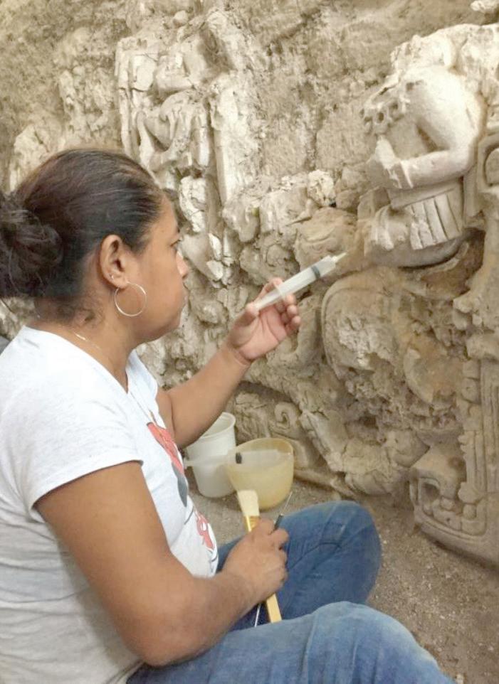 En el comunicado detallan que “la primera de las escenas muestra a dos guardianes que limitan un pedestal en el que, en tiempos prehispánicos, debió estar colocada una escultura; la particularidad del podio es que incorpora glifos alusivos a un gobernante de la dinastía Kaanu’l”. “En la segunda imagen aparecen individuos que, de acuerdo con el epigrafista y colaborador independiente de PROMEZA en Dzibanché, Alexander Tokovinine, hacen referencia a ancestros que asemejan habitar en el cielo nocturno, con estrellas, serpientes y otros motivos propios de las iconografías maya y teotihuacana”.