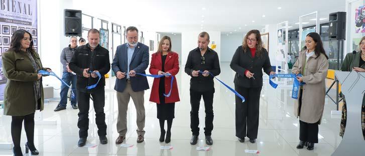 En el paso a desnivel que une las dos partes del campus principal de la Universidad Autónoma de Aguascalientes han montado una exposición fotográfica con motivo del 50 aniversario de la institución.