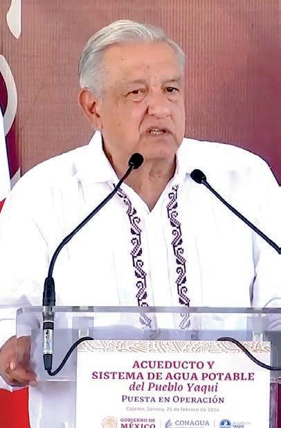 “Este es un día importante porque cumplimos con el compromiso de abastecer de agua a las comunidades de los pueblos yaquis. Cincuenta comunidades con este acueducto que (…) significó construir cerca de 250 kilómetros de instalaciones, de líneas de conducción de agua con tubería, desde ramales principales hasta las redes de distribución para cada pueblo; esto va a permitir que se cuente con 200 litros por segundo, que es suficiente (…) para abastecer, aun con crecimiento poblacional, 30 años más”, informó.